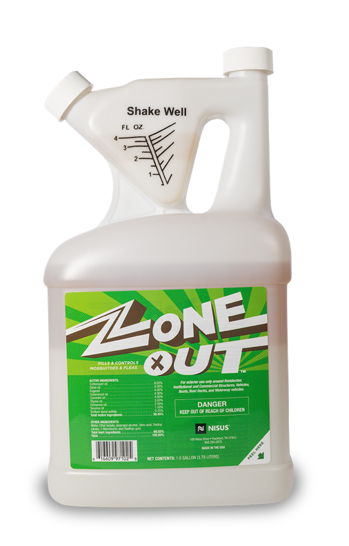 Zone Out features a proprietary blend of eight essential oils chosen for their synergistic effects and an EPA FIFRA-exempt product. It is packaged in a convenient "tip-and-measure" 1-gallon jug for quick and easy field measurements. When used as directed, Zone Out delivers 100% mosquito knockdown in under 10 seconds and up to 100% kill within an hour after application. Zone Out also provides 100% knockdown of fleas in 20 minutes.